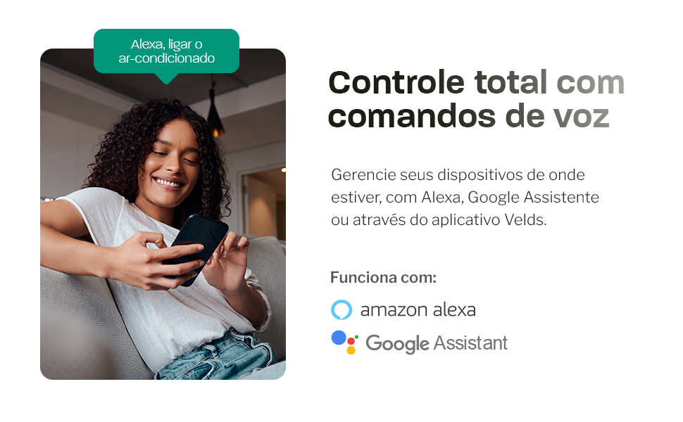 Compatível com Alexa e Google Assistente
