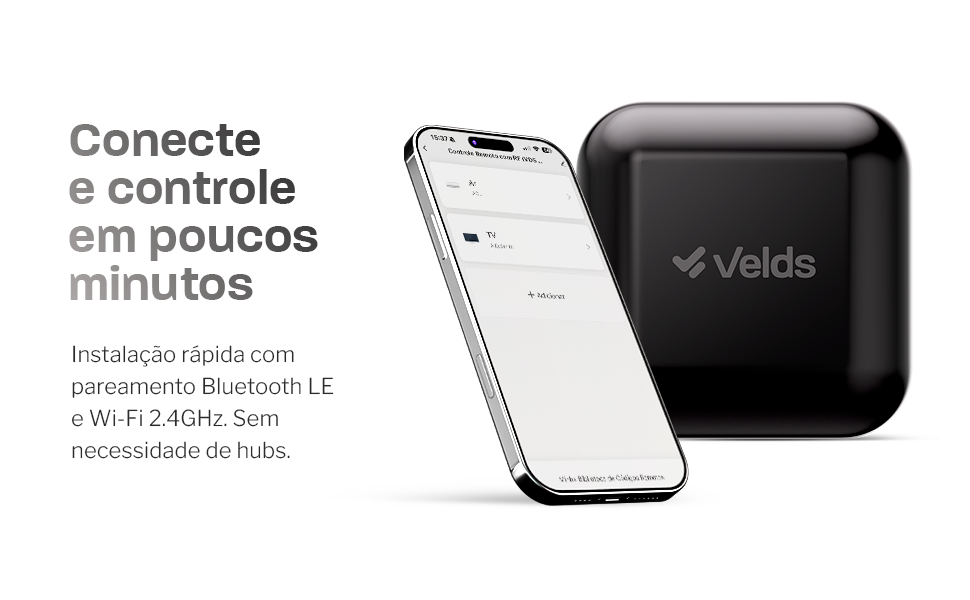 Com Bluetooth LE e Wi-Fi 2.4GHz, a instalação é rápida e fácil via aplicativo Velds. Pronto para uso em poucos minutos.