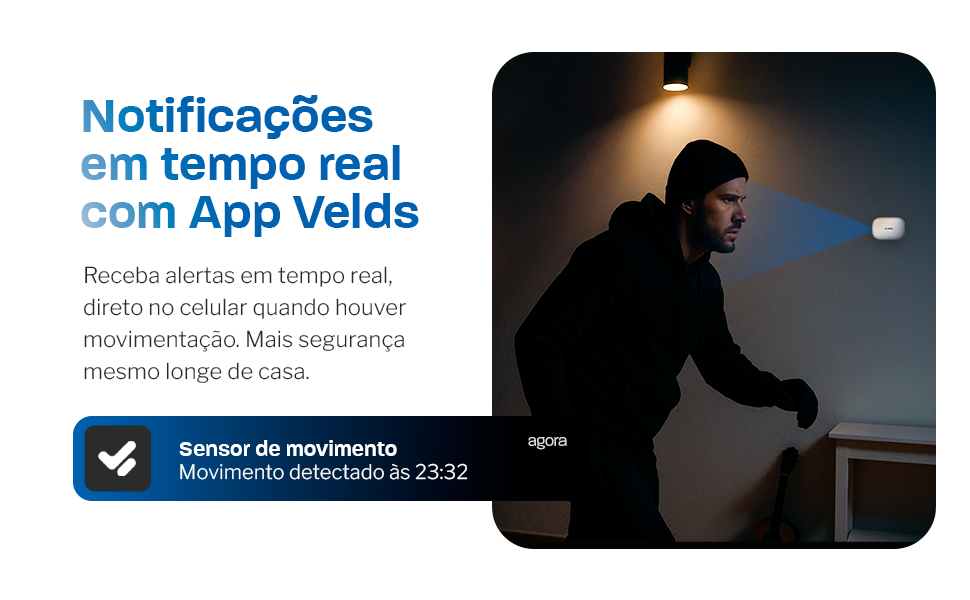 O Sensor de Presença Inteligente Velds foi desenvolvido para tornar sua casa mais segura e conectada com o mínimo de esforço. Equipado com sensor infravermelho piroelétrico de alta precisão, ele identifica movimentos em até 8 metros de distância e com ângulo amplo — ideal para salas, corredores, escritórios e entradas.