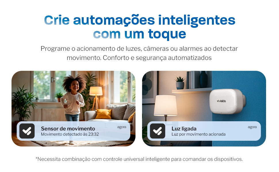 Use o movimento para acionar luzes, câmeras, alarmes ou rotinas automáticas.