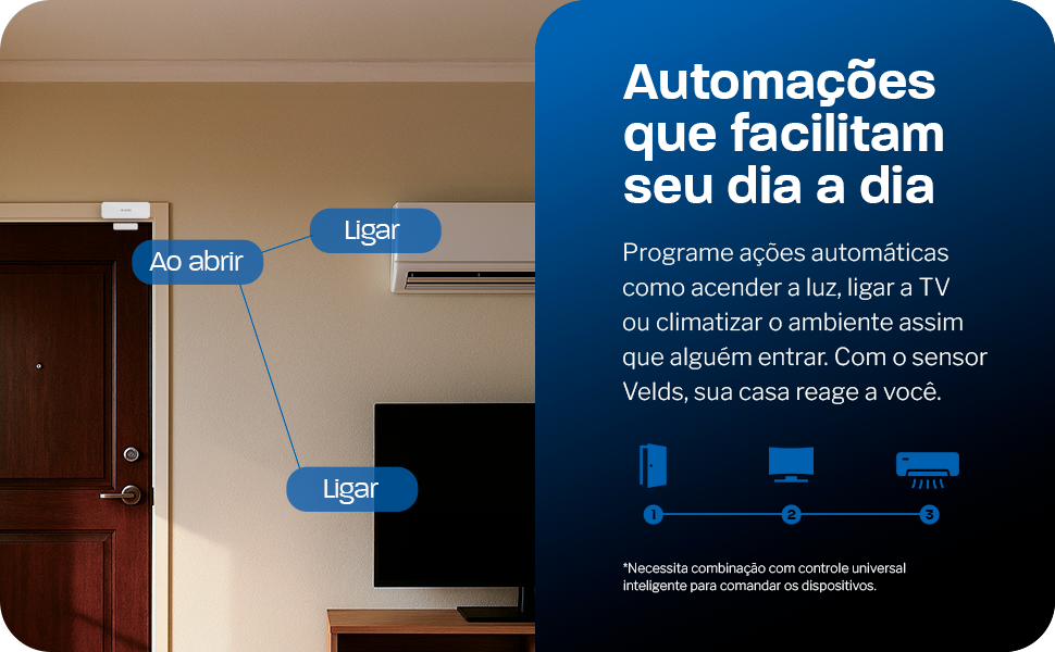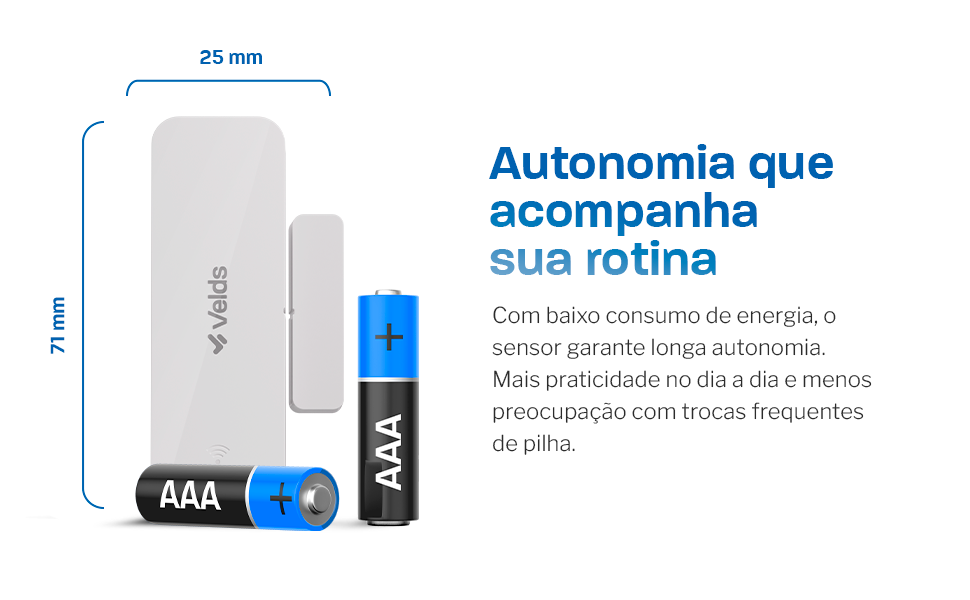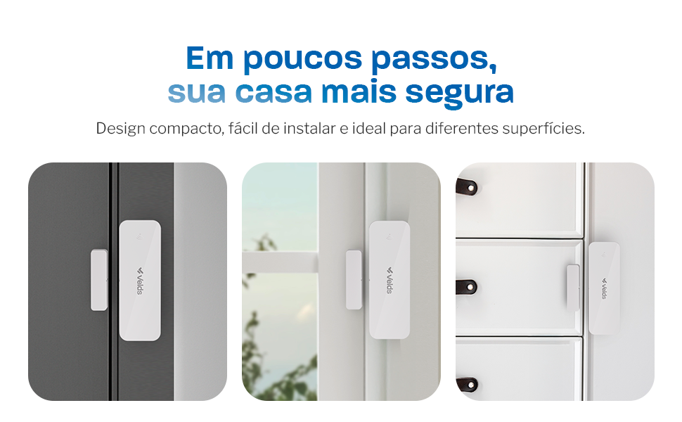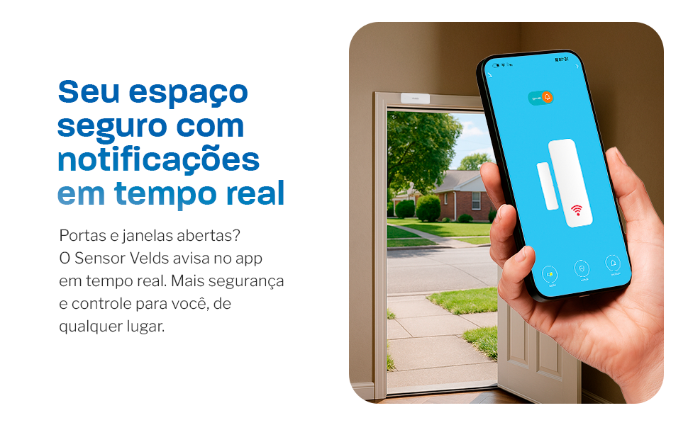 O Sensor Inteligente de Abertura Velds é a escolha ideal para quem deseja praticidade, economia e segurança em um único dispositivo. Seu design compacto permite instalação discreta em portas, janelas e armários, notificando via app Velds sempre que forem abertas ou fechadas.